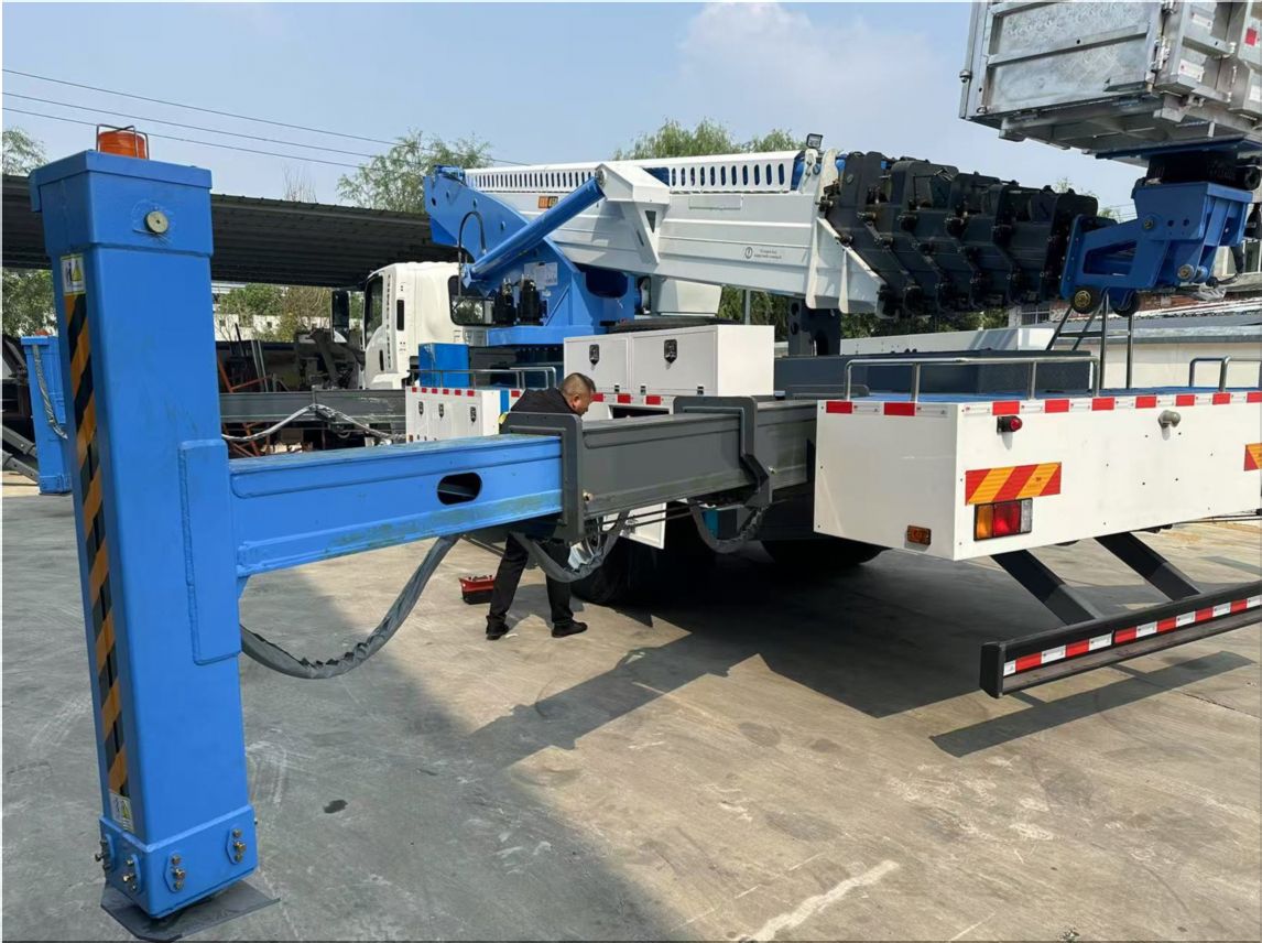 • Высокая грузоподъемность: автовышка способна поднимать грузы и рабочих на высоту до 45 метров, что позволяет выполнять работы на объектах средней этажности.
