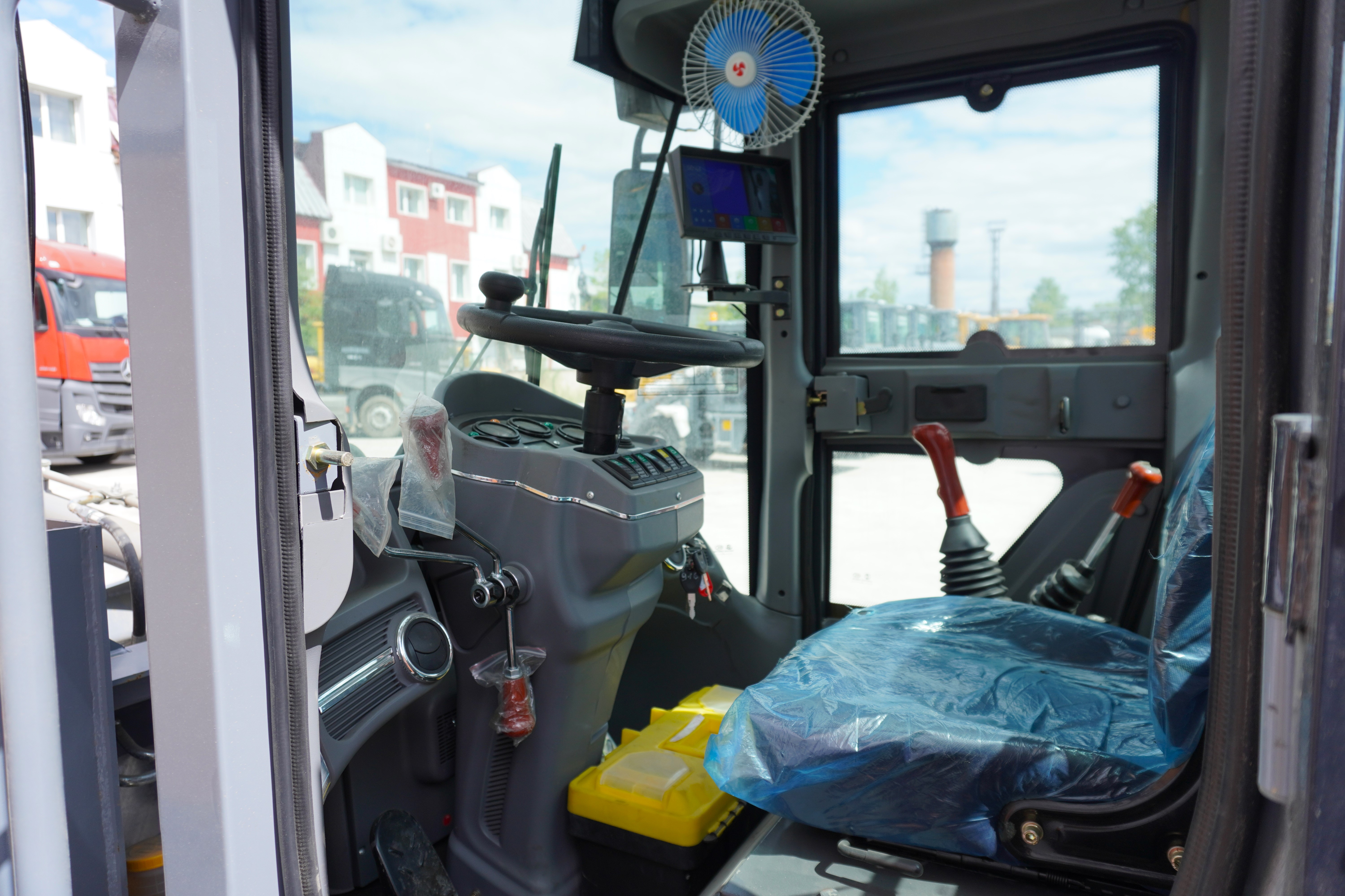 Кабина оператора в T916 разработана с учетом эргономических требований: