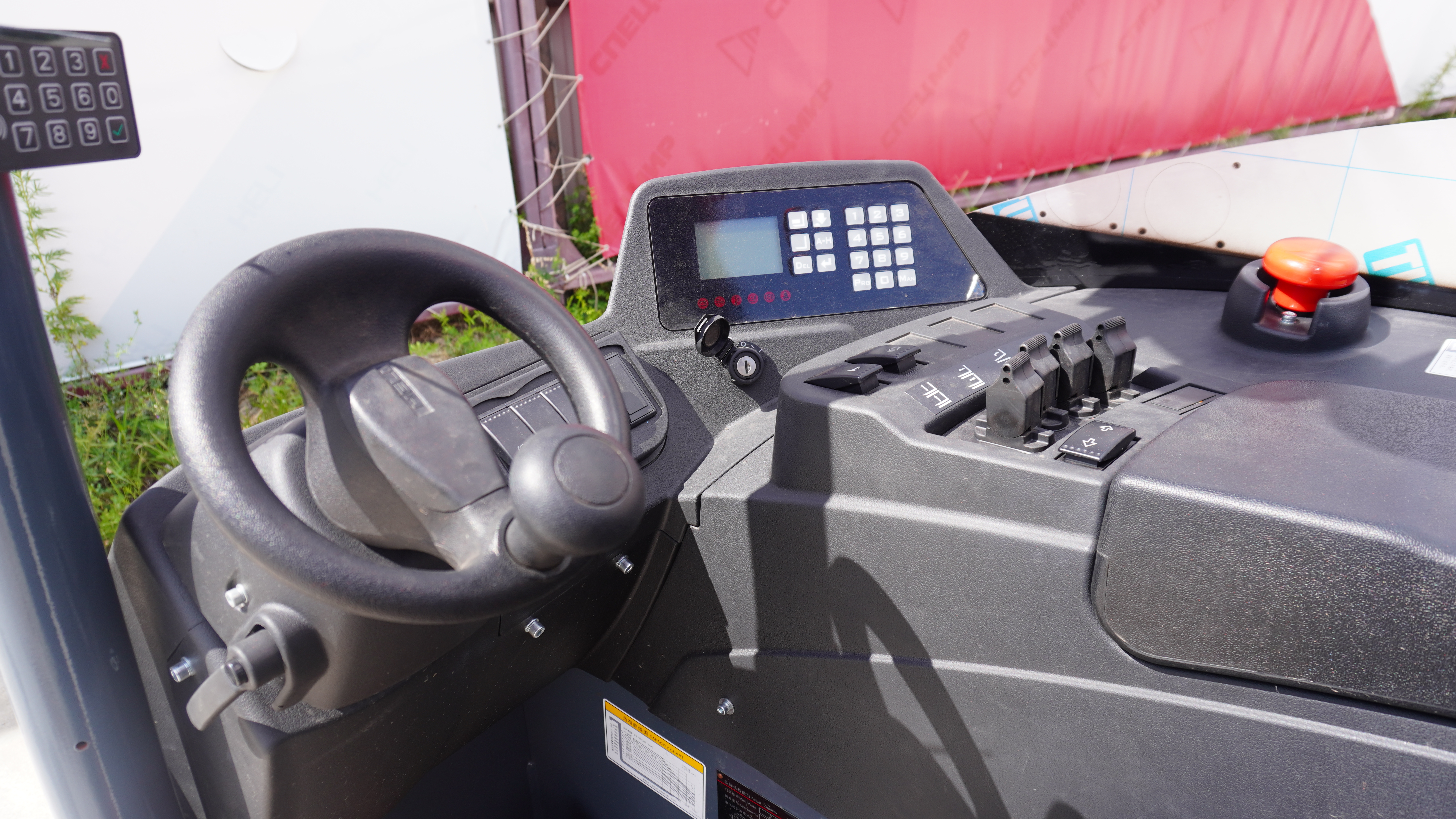 Удобная кабина: кабина ричтрака оснащена всем необходимым для комфортной и безопасной работы оператора, включая регулируемое сиденье, кондиционер, обогреватель и удобную панель управления.