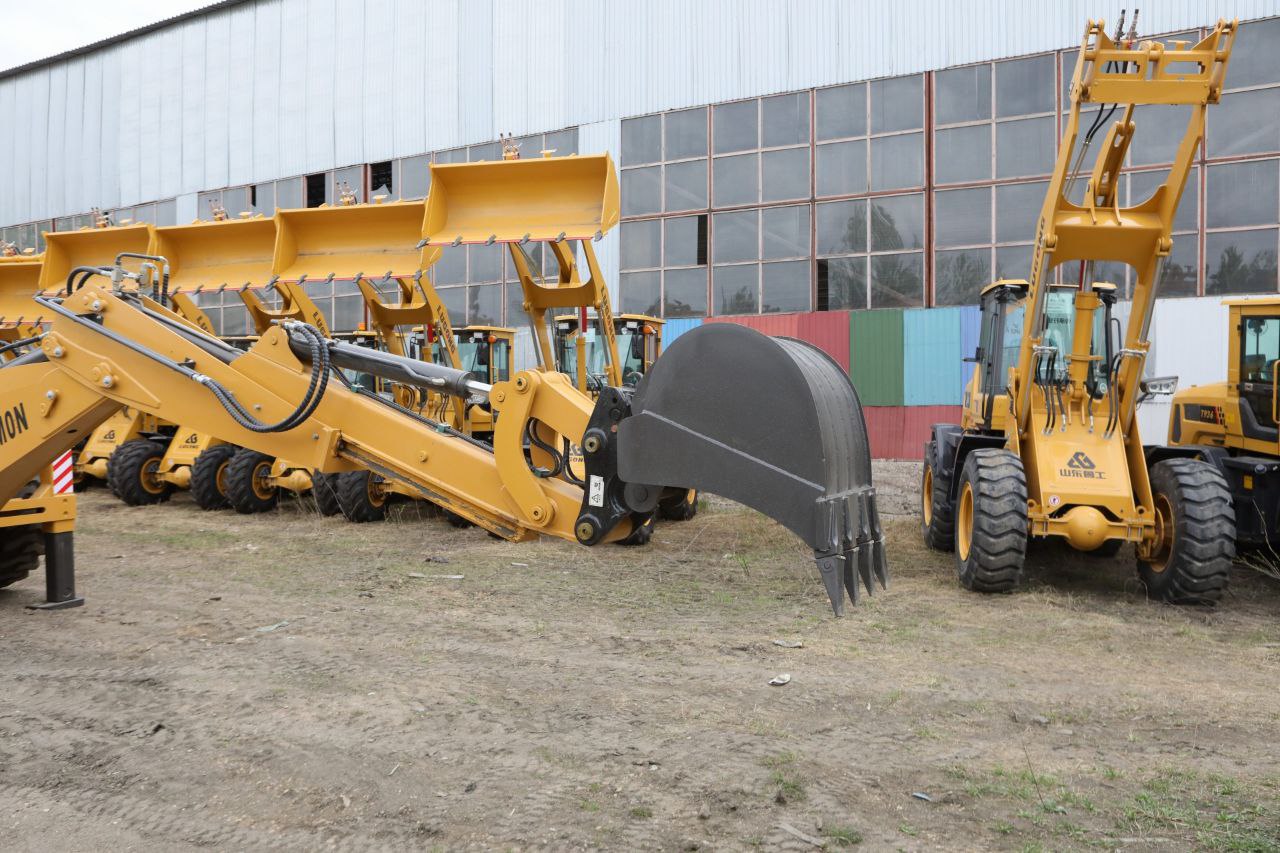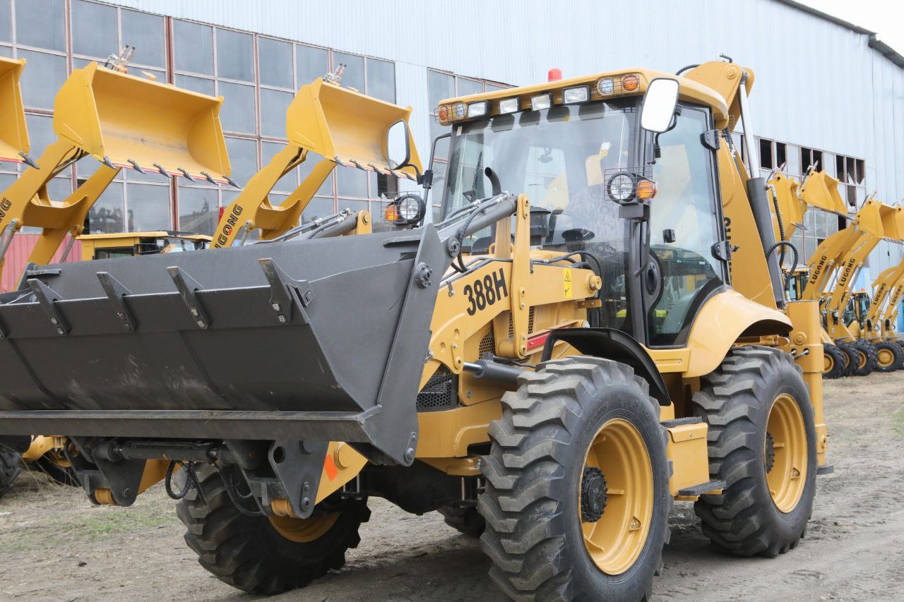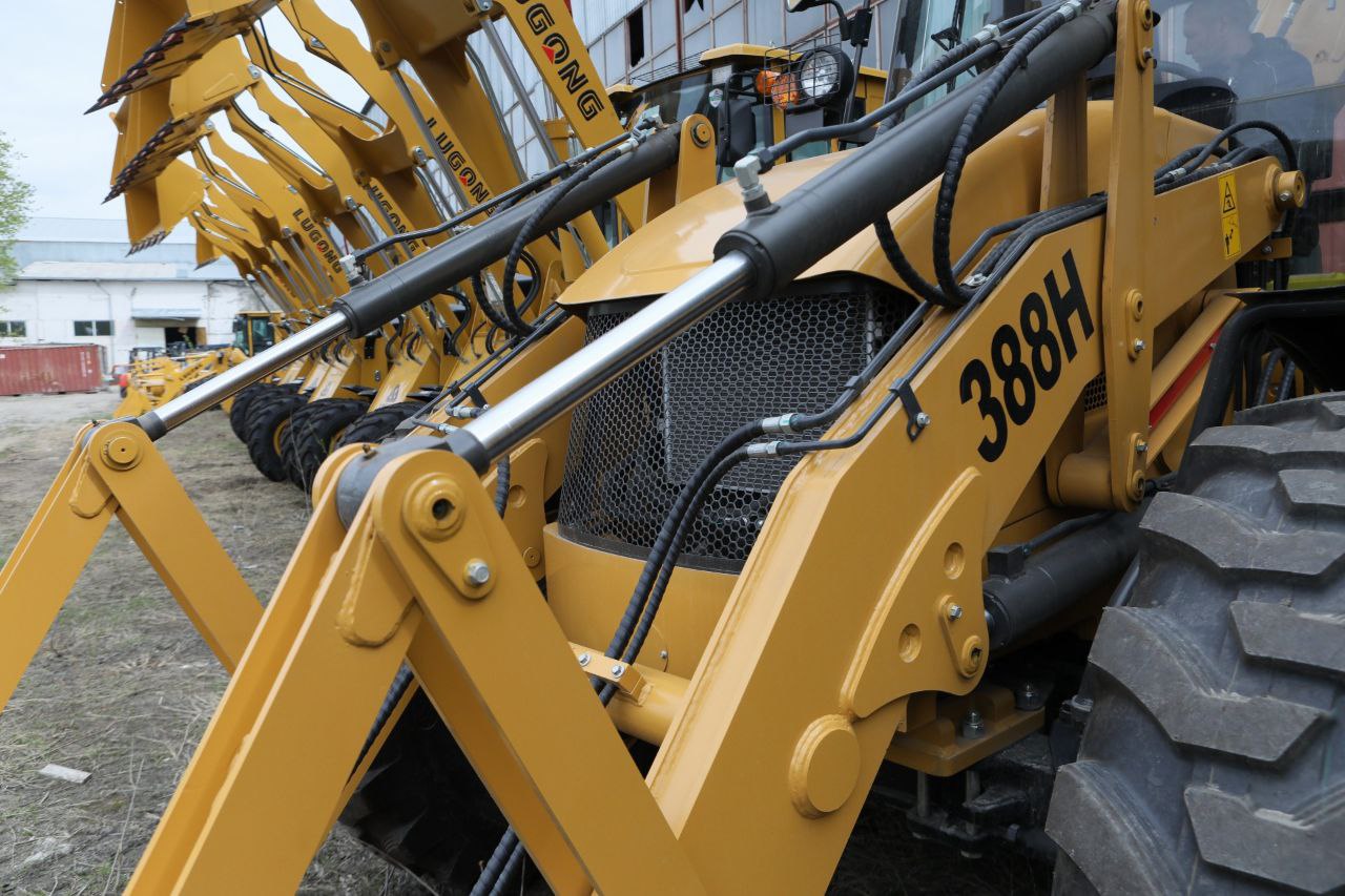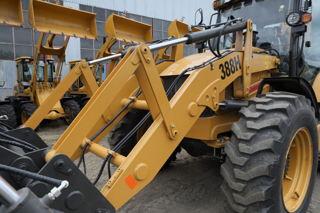 — Равноколесный экскаватор-погрузчик имеет прочную и устойчивую подвеску, что обеспечивает надежность и маневренность на различных типах поверхностей.