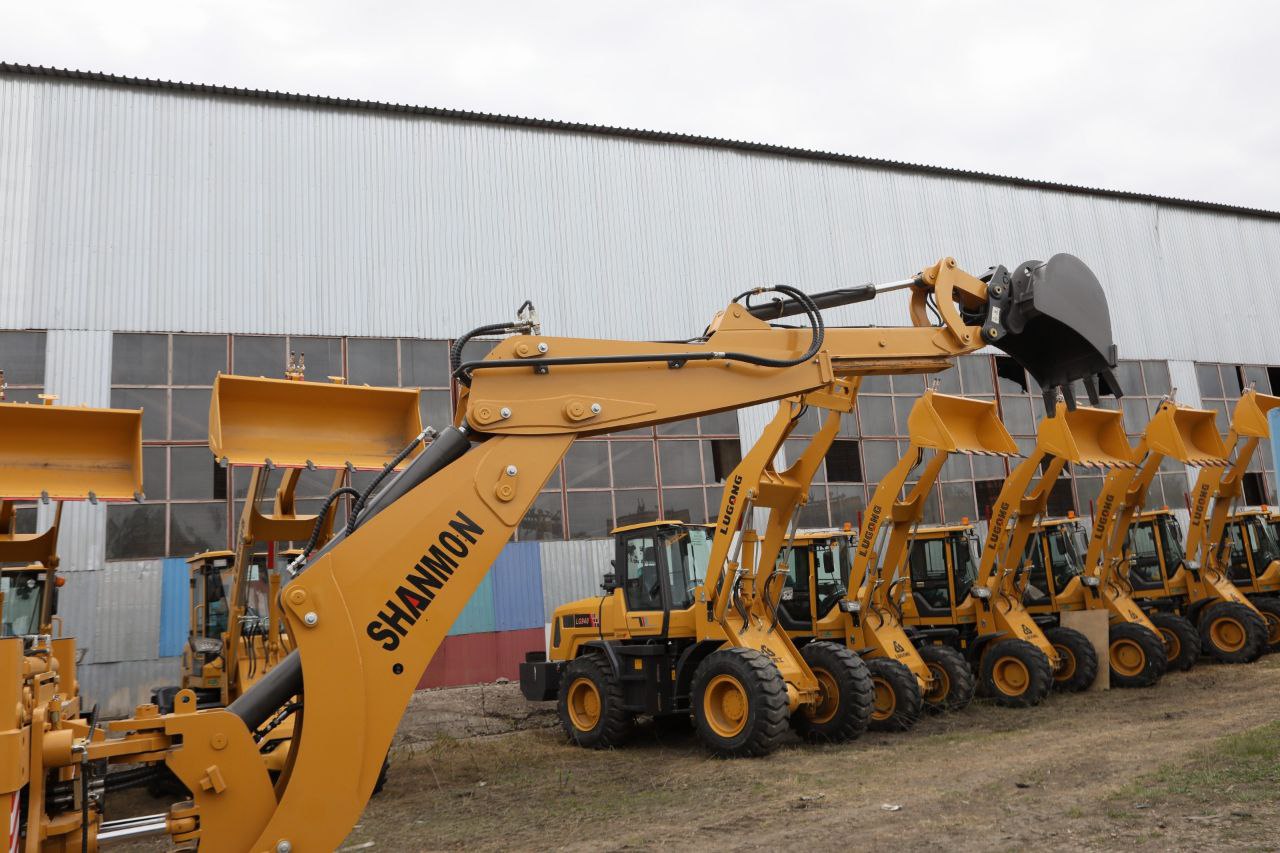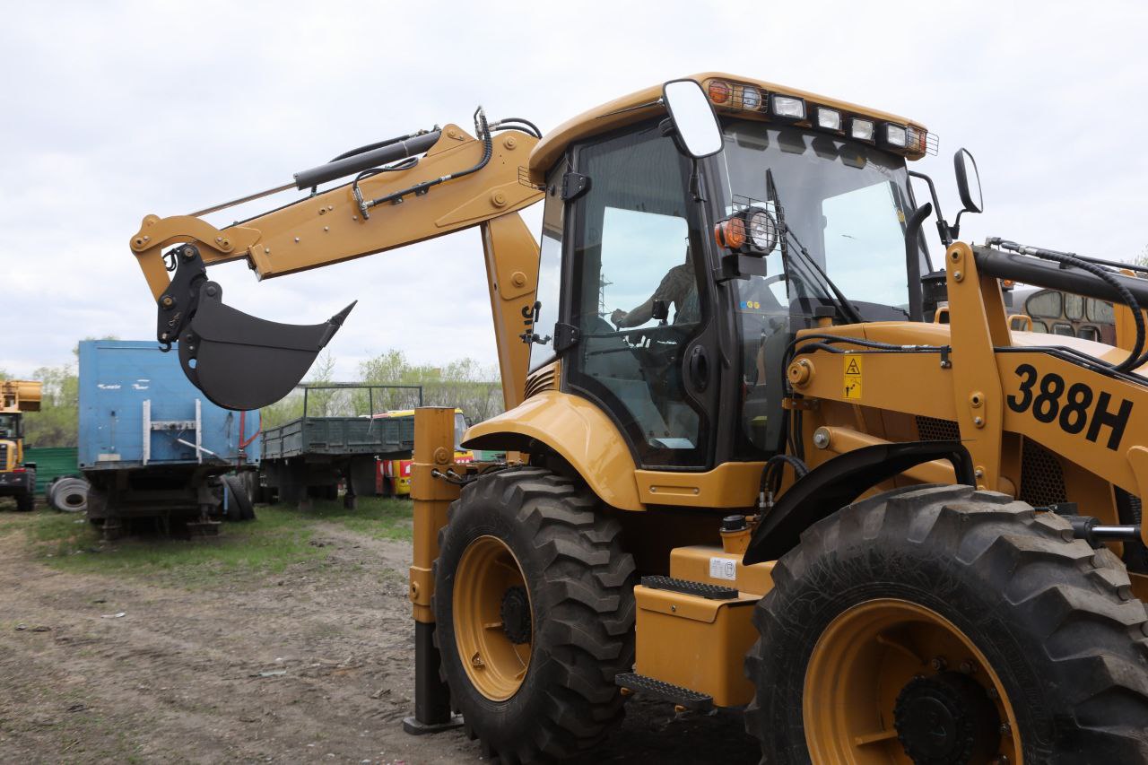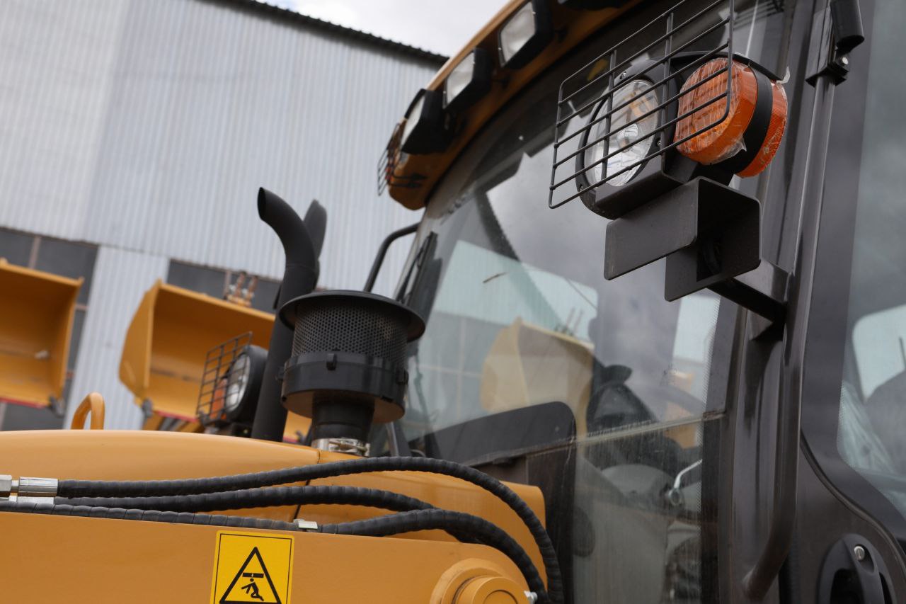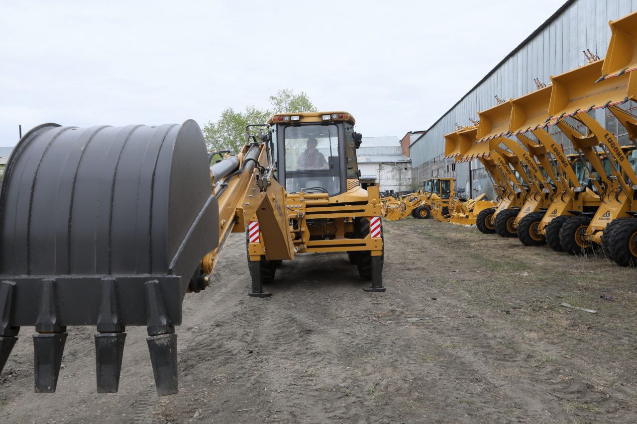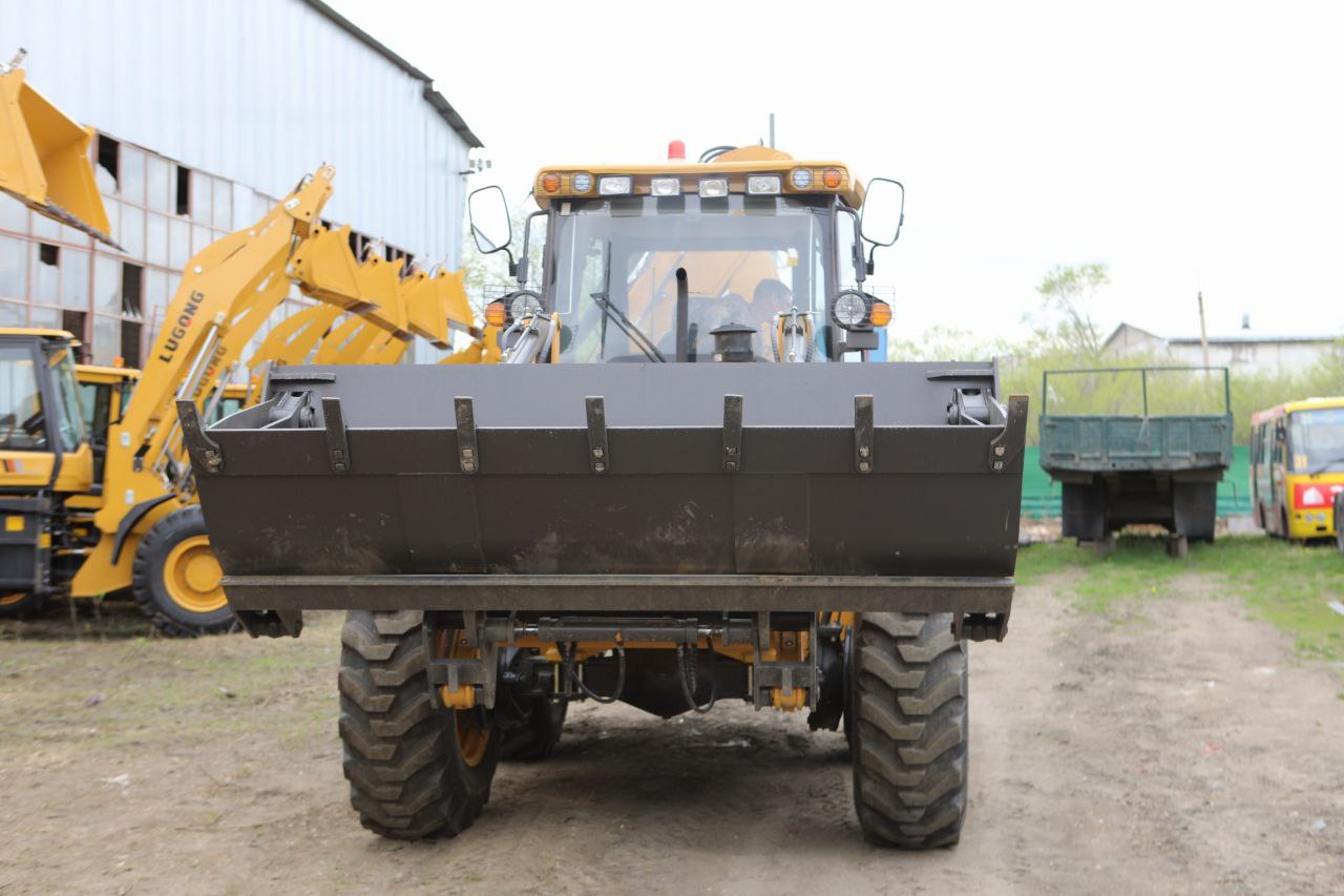 — Равноколесный экскаватор-погрузчик имеет прочную и устойчивую подвеску, что обеспечивает надежность и маневренность на различных типах поверхностей.