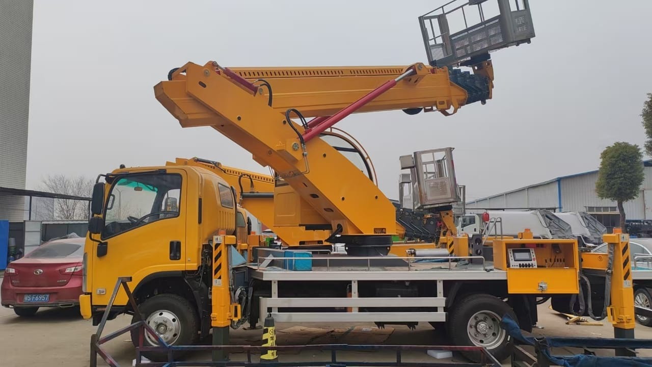 Маневренность: благодаря компактным размерам и мощному двигателю автовышка Isuzu легко перемещается по городу и работает на ограниченных пространствах.