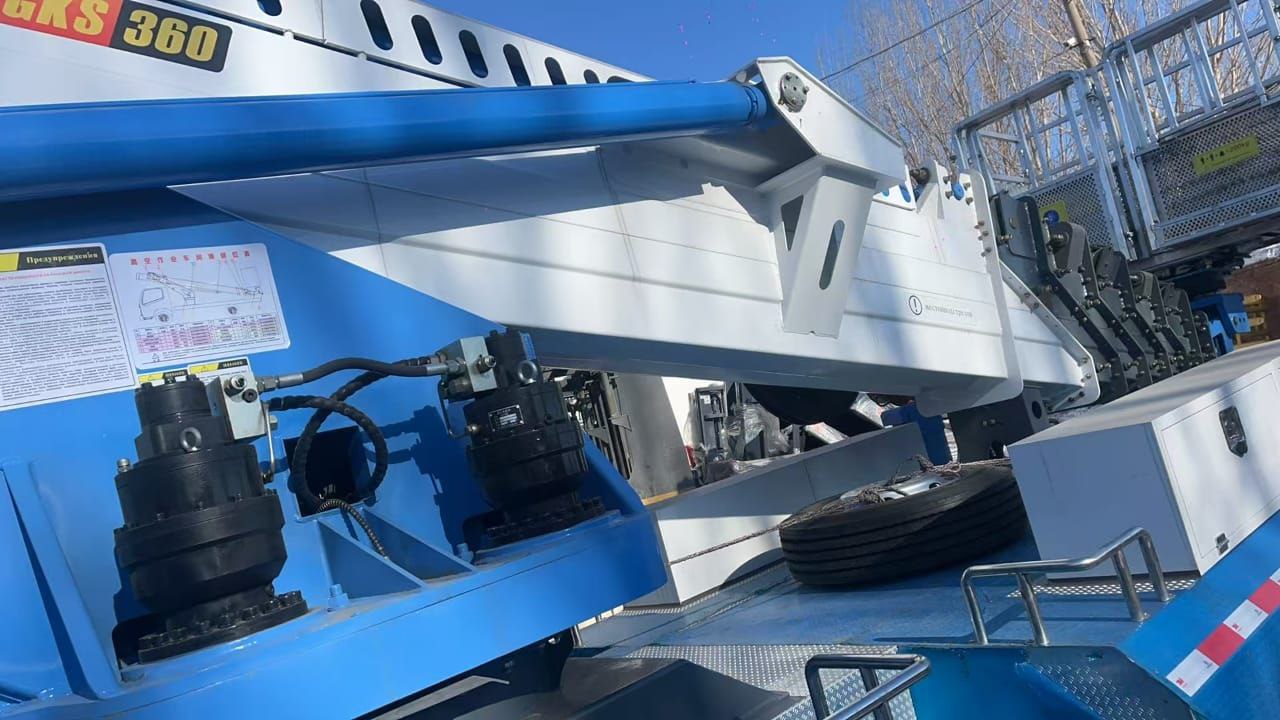 Высокая грузоподъемность: автовышка способна поднимать грузы и рабочих на высоту до 36 метров, что позволяет выполнять работы на объектах средней и высокой этажности.